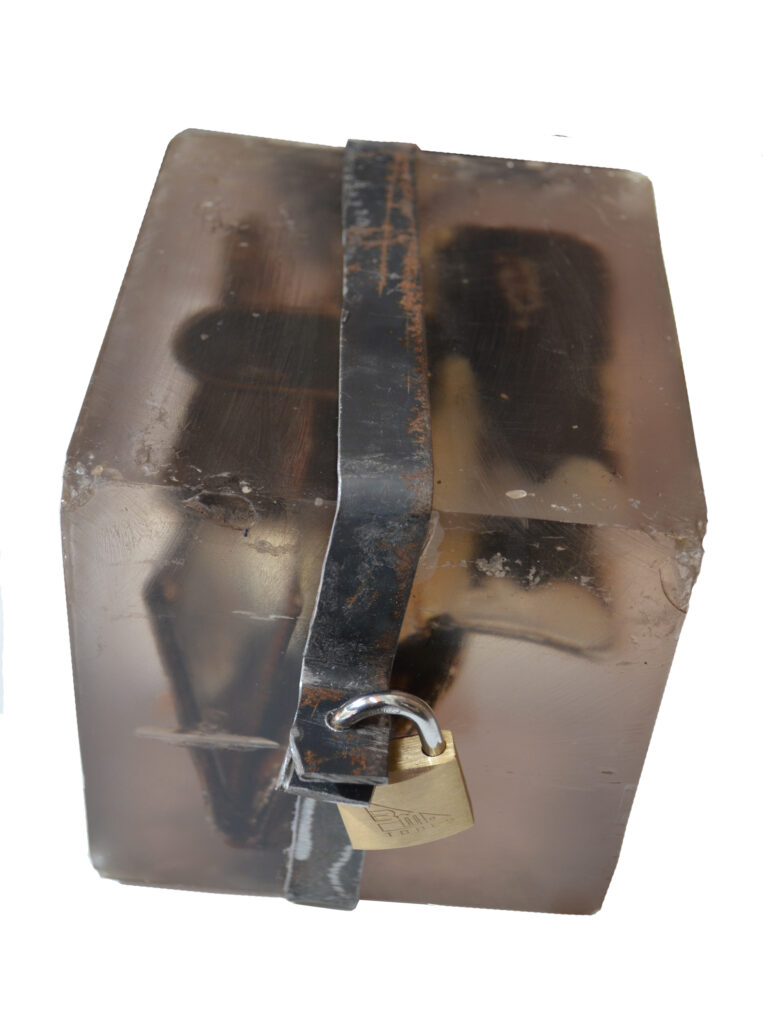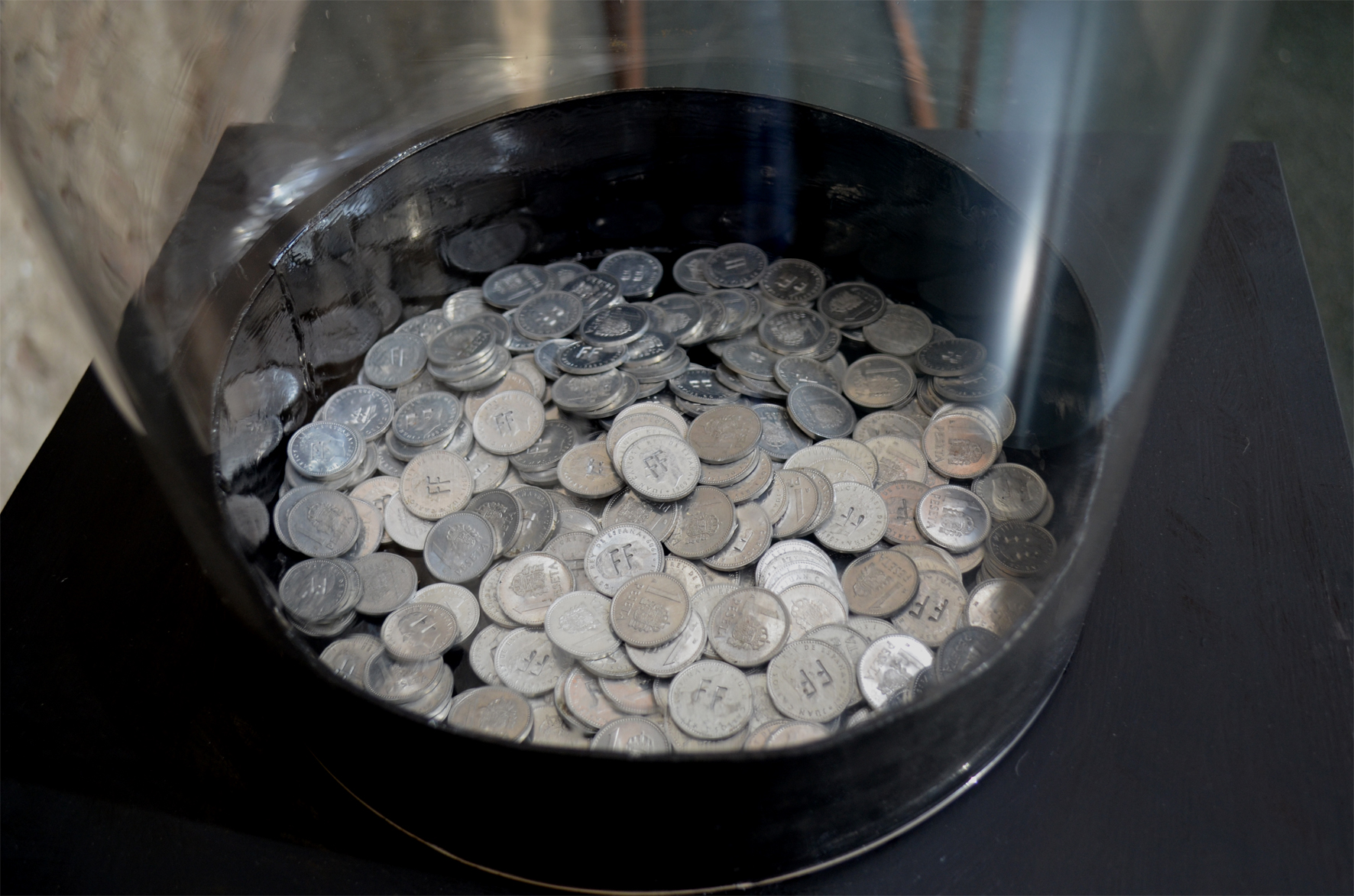 Ferro, urna de vidre i monedes intervingudes