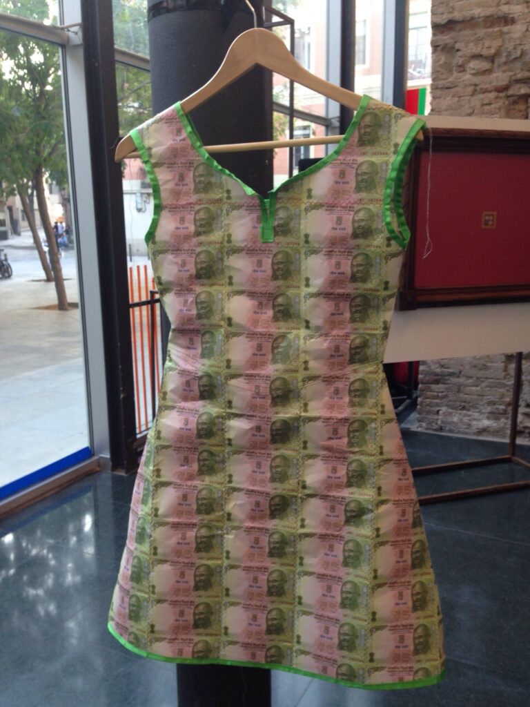Facsímils de bitllets de 5 rupies i fil de cosir